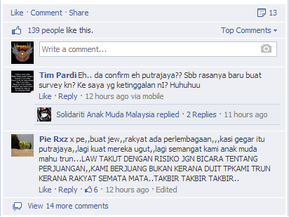 Di bawah ini, sebuah laman FaceBook yang dipercayai milik PR cuba menghasut Rakyat dan mengatur satu perhimpunan yang juga Demostrasi bagi menjatuhkan kerajaan.